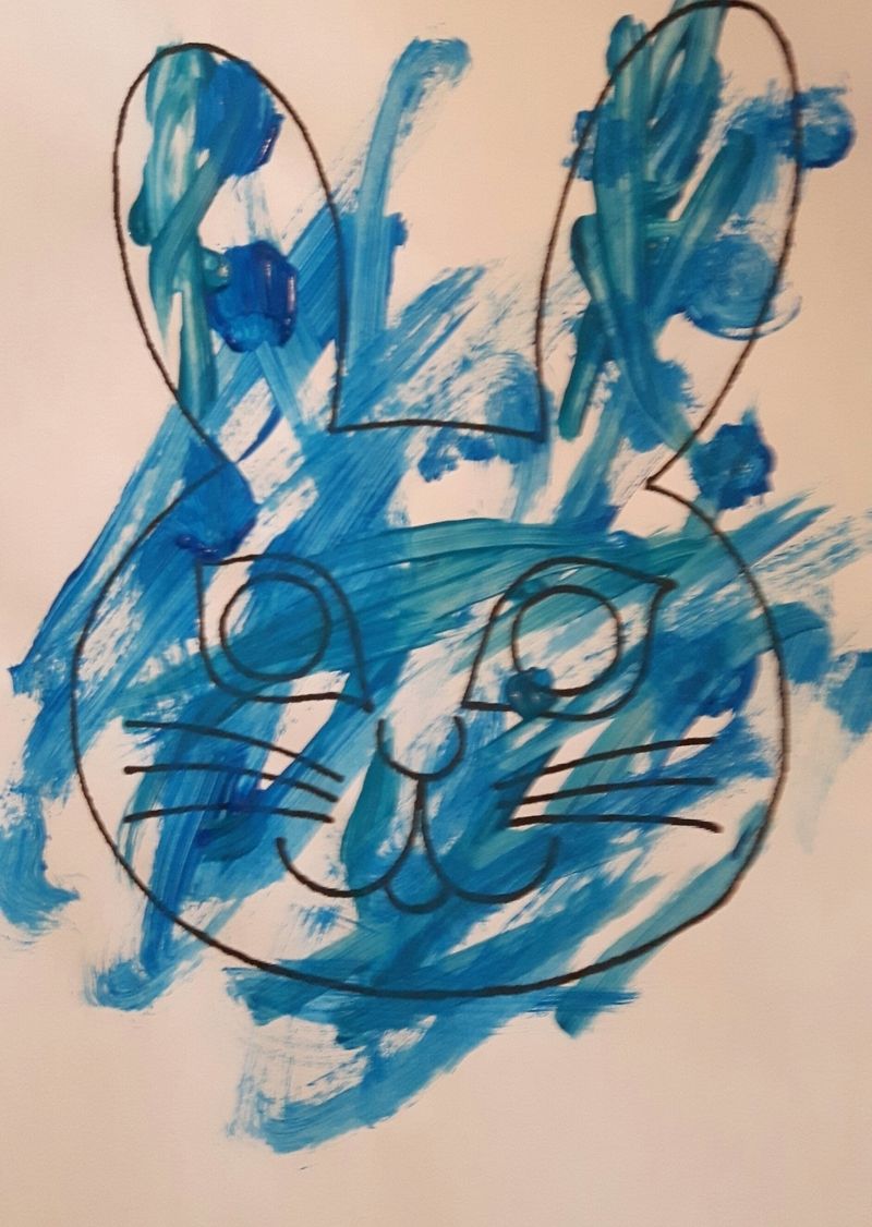 Donc avec le restant de peinture du masque papillon Annaëlle a peint ce joli petit lapin...
